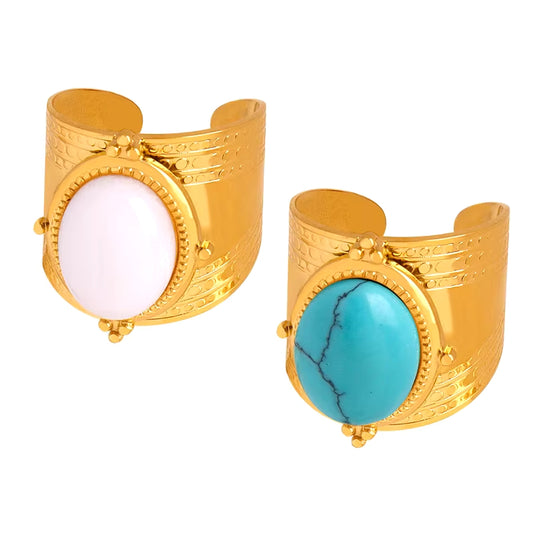 Anillos Retro de Titanio con Piedras Naturales Turquesa y Shirakai Blanca – Belleza Duradera y Significado Profundo