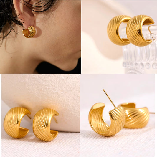 Aretes en Forma de Luna en Acero Inoxidable 316L y baño de Oro de 18K