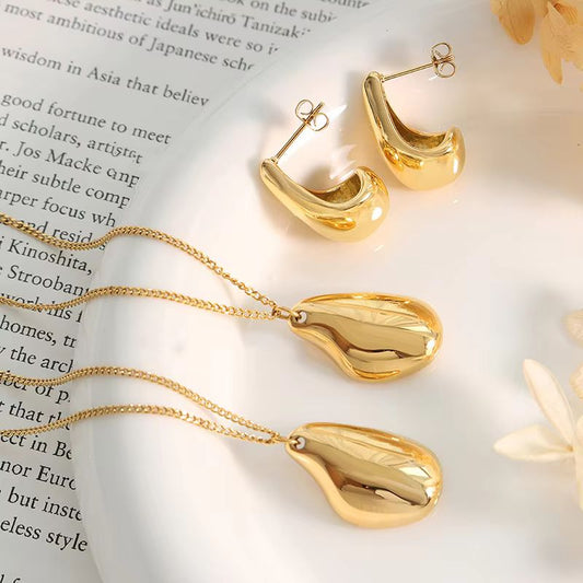 Conjunto Elegante de Collar y Aretes en Titanium Inoxidable con Forma Ovalada