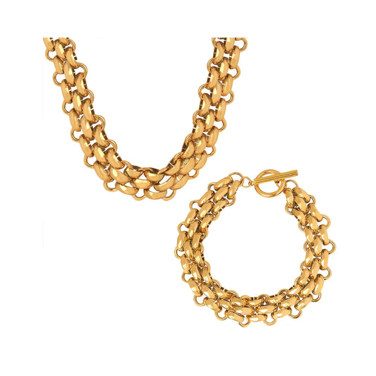 Conjunto grueso de collar y pulsera en acero 316L con baño de oro de 18K-No cambia de color