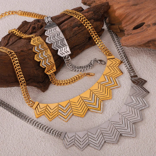 Conjunto de Collar y Pulsera en acero 316L -Chapado en Oro de 18K- No cambia de color