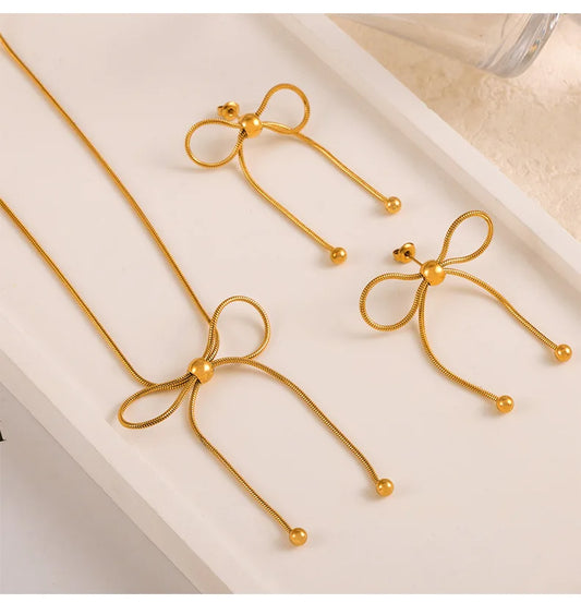 Conjunto de collar y pendiente de moños en acero 316L- No cambian de color